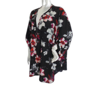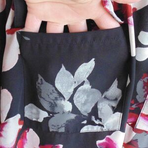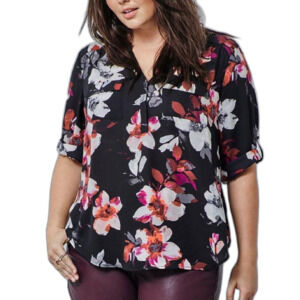 TORRID Insider Blouse, 6, Black, Floral, Georgette, Pockets, Tab sleeves,