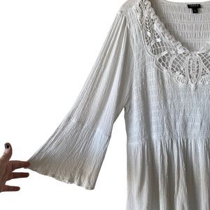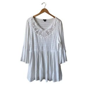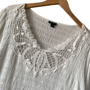 TORRID Ivory Babydoll Clip Dot Gauze W/Crochet Detail Top | Size 2X