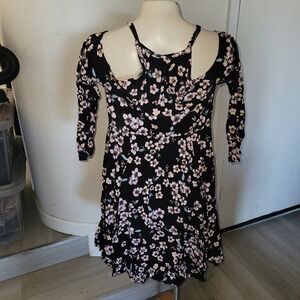 Keywords: Torrid dress, black floral dress, cold shoulder dress, long sleeve dress, plus size dress, floral print dress, bohemian dress, casual dress, women's dress, spring dress, summer dress, fit and flare dress