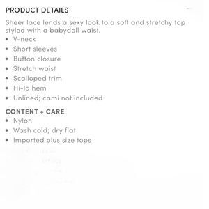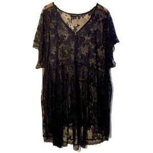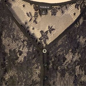 TORRID LACE TOP Stretch Sheer Babydoll High Low Women 30, 6X Black Short