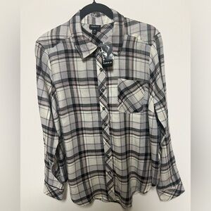 TORRID LONG SLEEVE SHIRT - PINK/WHITE/BLACK PLAID SIZE M/L 10.