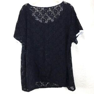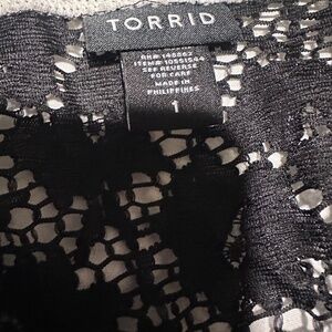 TORRID Lace Ringer Tee Black lace with white trim on neck and sleeves Size 1