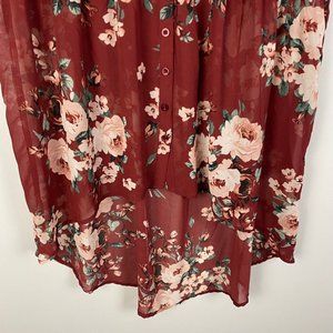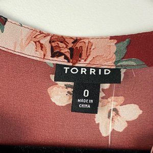 TORRID Lexie Brick Red Floral Chiffon Hi-Lo Babydoll Tunic in Size 0X