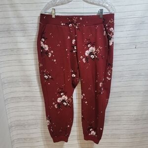 TORRID MAROON FLORAL SWEATPANT JOGGERS, SZ 0