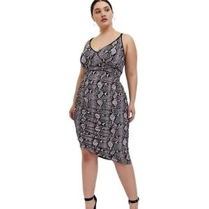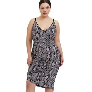 TORRID MAUVE PINK SNAKESKIN PRINT STUDIO KNIT RUCHED BODYCON DRESS