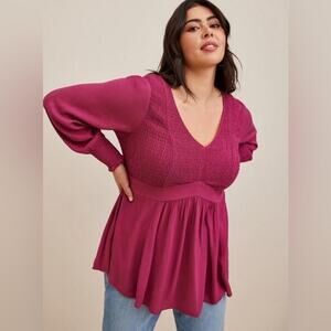 TORRID | Magenta Pink Babydoll Smocked Crinkle Blouse Long Sleeve!