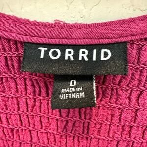 TORRID | Magenta Pink Babydoll Smocked Crinkle Blouse Long Sleeve | Large