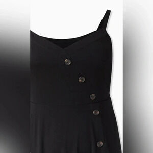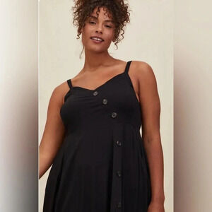 Black Torrid Midi Challis Asymmetrical Button-Front Dress Sz 2. The color washes out in my photos but it’s true black