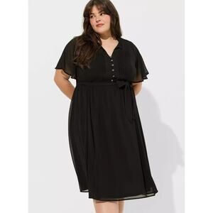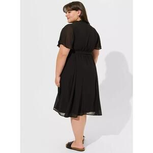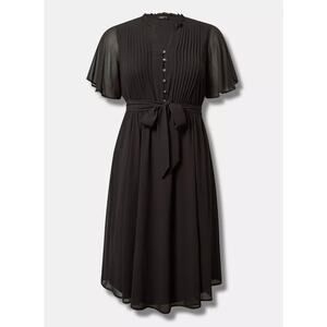 TORRID Midi Chiffon Ruffle Neck Pintuck Dress Deep Black Sz 3X NWT {3X51}