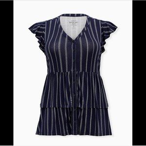 TORRID NAVY WHITE BUTTON FRONT LAYERED BABYDOLL SOFT TOP