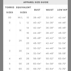 Torrid Size 3=3X Bust: 54" & Length: 33". All measurements are approximate.