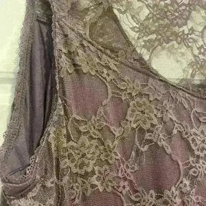 Women’s eggplant color lace sleeveless tank. Drop lace back. New with tags. Never worn. Across the front breast measurement is 20in and length is 30in