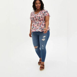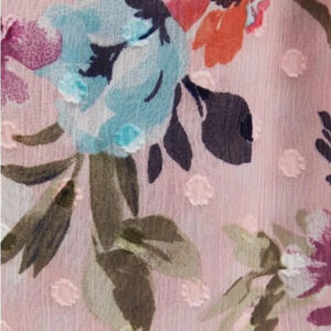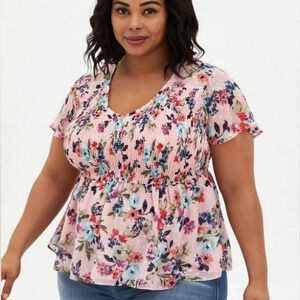 TORRID NWOT Peplum Chiffon Clip Dot Smocked Top in Floral Pink