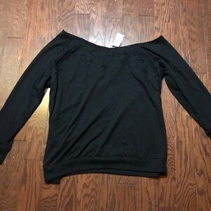 TORRID NWT Black Lace Embroidered Off Shoulder Top Sweatshirt Plus Sz 3X