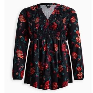 TORRID NWT RAYON TWILL SMOCKED BUTTON-FRONT TUNIC TOP