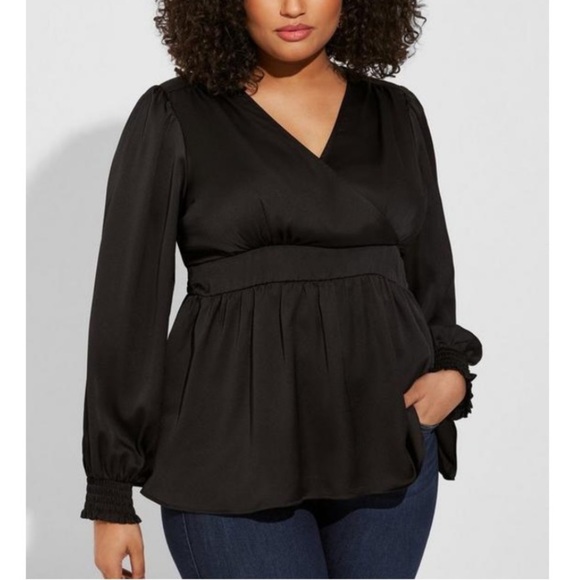 TORRID NWT Satin Surplice Tie Cut Out Back Long Sleeve Blouse