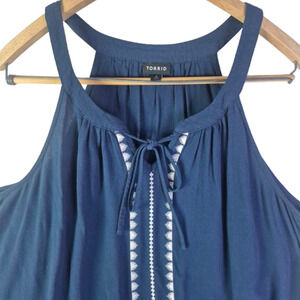 TORRID Navy Blue Crepe Embroidered Sleeveless Blouse Womens Plhs Size 0
