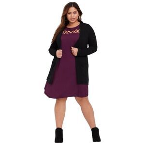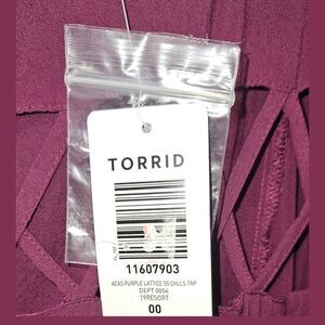 TORRID New PURPLE LATTICE Short Sleeve Challis Trapeze Mini Dress M/L