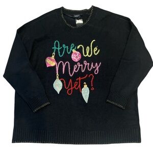 TORRID New Size 1 Festive Black Crew Neck Sweater Colorful Embroidery & Sequins
