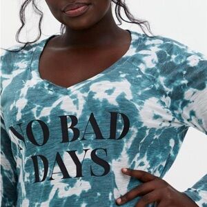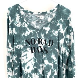 TORRID No Bad Days Classic Fit V-Neck Tee - Teal Tie-Dye
