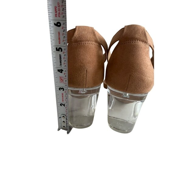 Elevate your style with these chic TORRID sandals featuring a nude color and clear straps. Perfect for any occasion, these heels offer comfort and elegance for all-day wear. Faux suede upper