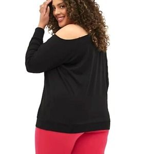 TORRID OFF SHOULDER EMBROIDERED SWEATSHIRT - FRENCH TERRY BLACK