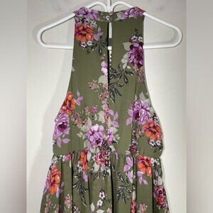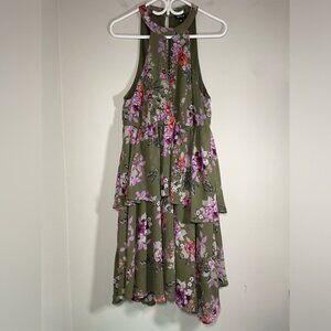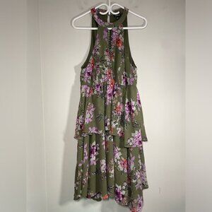 TORRID Olive Green Halter Floral Tier Ruffle Dress size 00