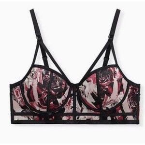 TORRID Online Exclusive 3X Black & Pink Rose Power Mesh Strappy Bralette