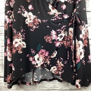 TORRID PLUS SIZE 3 3X WRAP TOP BLACK FLORAL BLOUSE FALL SPRING GUC