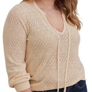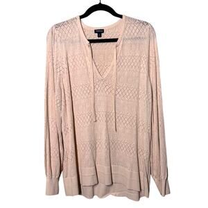 TORRID POINTELLE PULLOVER DRAWSTRING TIE NECK SWEATER SIZE 2 (18/20)