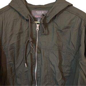 Chic olive utility jacket by Torrid. Features drawstring details and a relaxed fit. Ideal for casual wear.