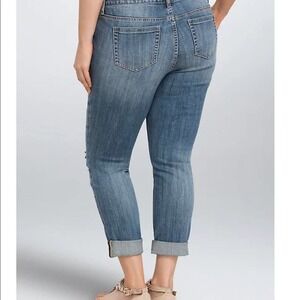TORRID PREMIUM BOYFRIEND JEANS - MEDIUM WASH WITH RIPPED DESTRUCTION 22
