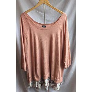 TORRID Peach Pink Raglan 2fer Sweater w/ Paisley Underhem Boatneck Size 4