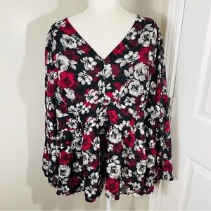 TORRID Peplum Chiffon Clip Floral Blouson Long Sleeve Top - 4X