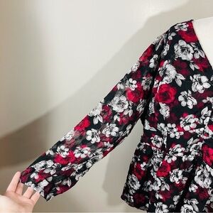TORRID Peplum Chiffon Clip Floral Blouson Sleeve Top