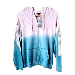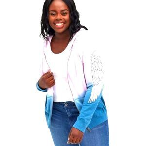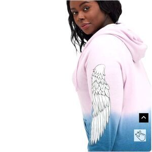 TORRID Plus Size Dip-dye Pink blue Cozy Fleece Wings zip-Up Hooded Jacket.