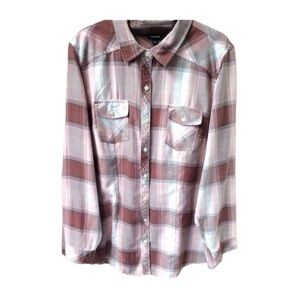 TORRID Plus Size Taylor Rayon Twill Button Down Shirt in Pink Plaid Size 1
