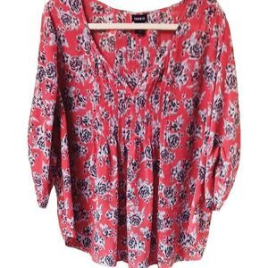 TORRID Plus Size Floral Print Ruched Chiffon Pintuck Top.