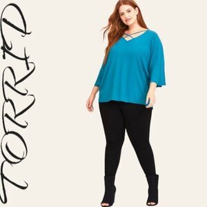TORRID Plus SizeโTeal Crepe Strappy Criscross Blouse.
