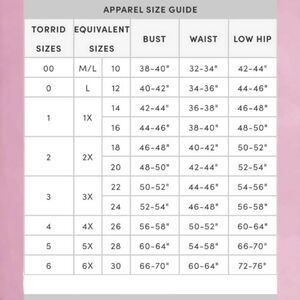 TORRID Size 1=1X 16-18 Oversized Bust: 54" & Length: 29". A 2X & 3X Woman could fit this as well. All measurements are Approximate and taken laying flat. The color is Dark Teal.