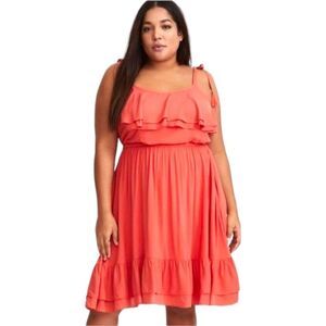 TORRID PlusโSize Coral SleevelessChallis Ruffle Tie Tassle Midi Dress Size 2X