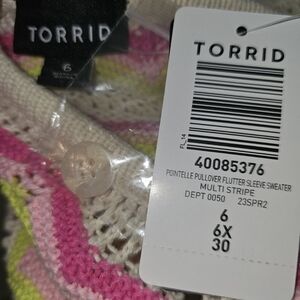 TORRID Pointelle Crochet Knit Button Down Short Sleeve Sweater In 6 (30) NWT