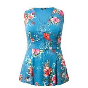 You're purchasing a new with tag plus size rayon slub button up with waste detail floral tank top size 2X no flaws still in bag ready to ship.
