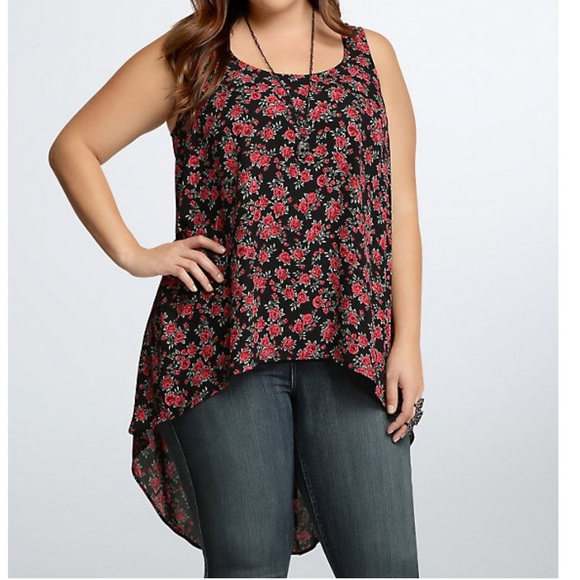 Forget bae getting you roses, we got you a tank that's sooo much better. Black georgette fabric (like breathable chiffon but less see-through) bursts with a red rose print. A hi-lo hem adds a flowy twist, the keyhole back flashes a hint of skin. Materials: Polyester.