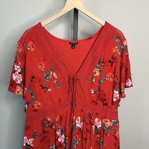 TORRID Red Floral Crochet Skater Dress Boho Front Tassel Tie Size 4X