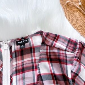 TORRID Red Plaid Georgette Tie Front Blouse Top 2X