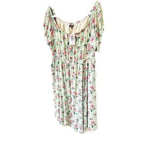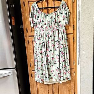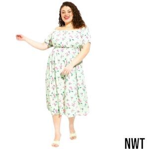 TORRID Retro Chic MidiโGauze Puff Sleeve Green Floral Skater Dress Size 1X