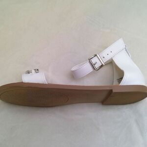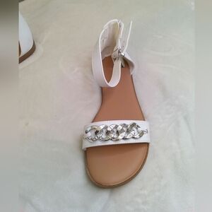 Step out in style with these chic Torrid white sandals featuring a striking silver chain detail. Perfect for any occasion, these sandals offer both comfort and elegance. They are like new and only worn once.