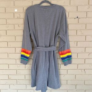 TORRID SHIFT SWEATSHIRT DRESS - COZY FLEECE RAINBOW CUFFED GREY BELTED SIZE 3X