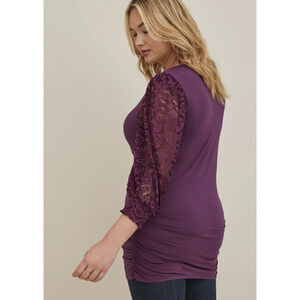 TORRID SIZE 3 LACE V-NECK RUCHED FRONT LONG SLEEVE TOP SIZE 22-24, 3X